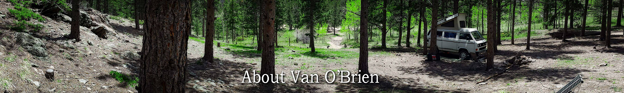 Greetings! I'm Van O'Brien and I welcome you to my website. I am 62 year old retired photographer and video production guy. I am spending my retirement traveling around in my 1986 VW Westfalia Syncro van. I camp in National Forest and BLM areas and tend to stay in one place for the allowed period of two weeks per location. I have a new traveling companion, an Australian Cattle Dog named Willow.
