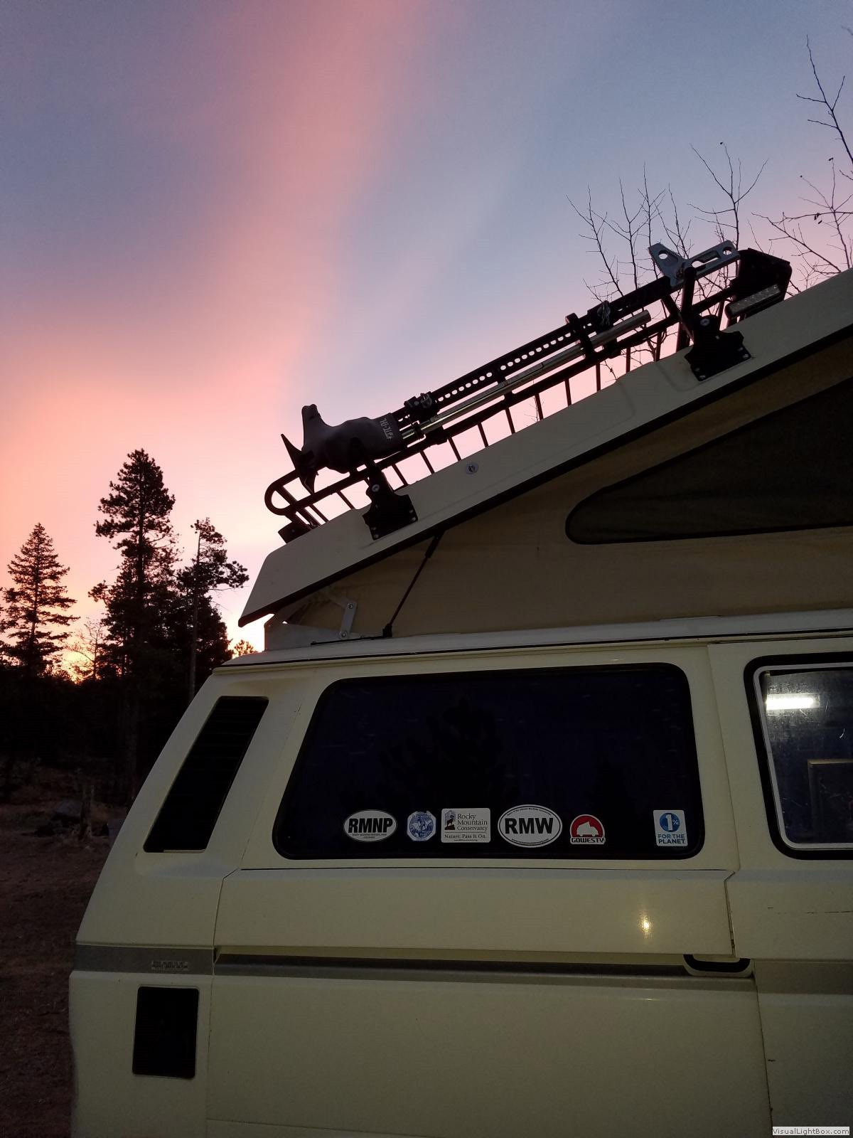 | The gallery below shows a campsite in the Johnny Park area of Roosevelt National Forest. The elevation is about 8700' and in an area with many established dispersed camping sites. This is a really nice spot I was graced with beautiful skies on this trip. |
