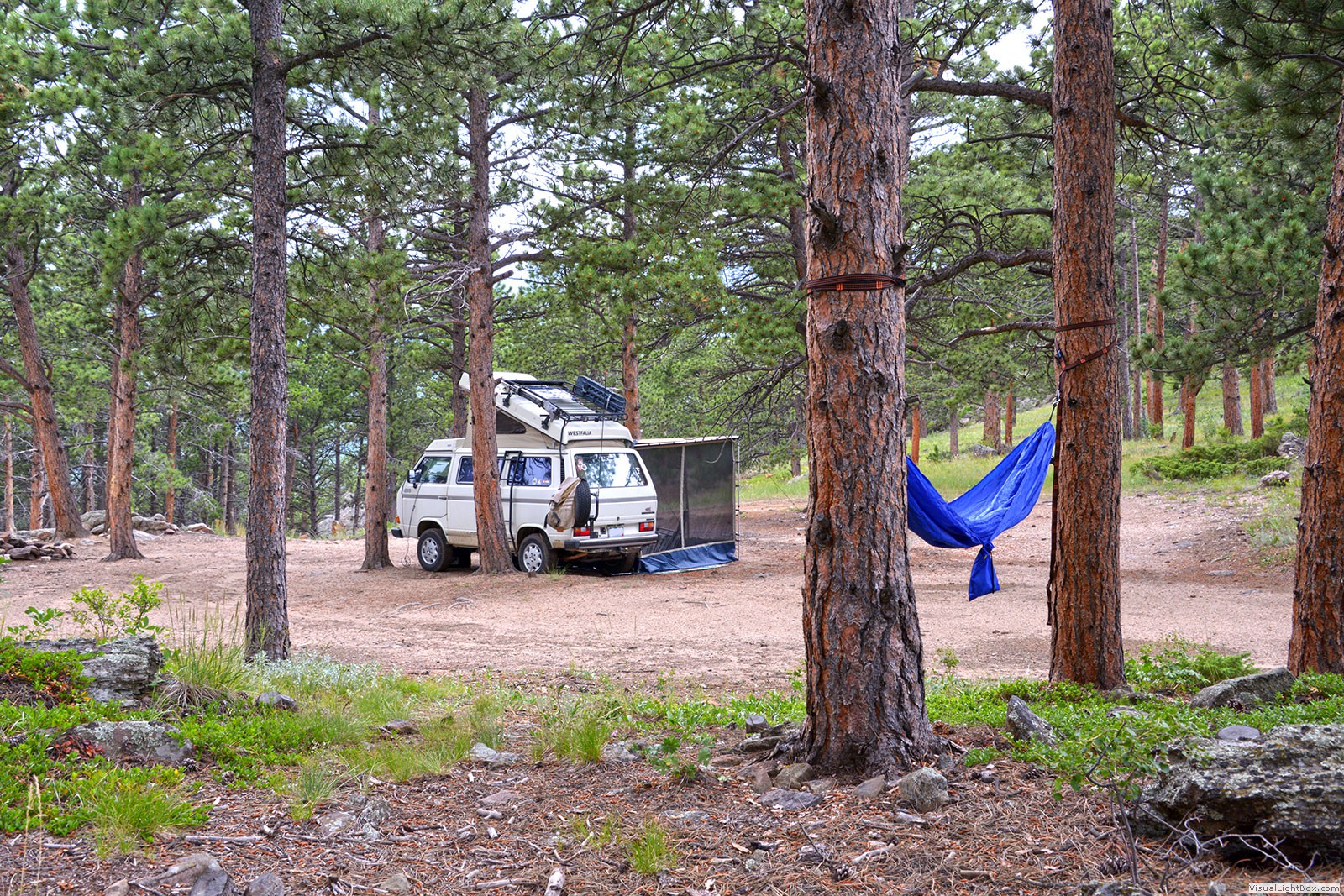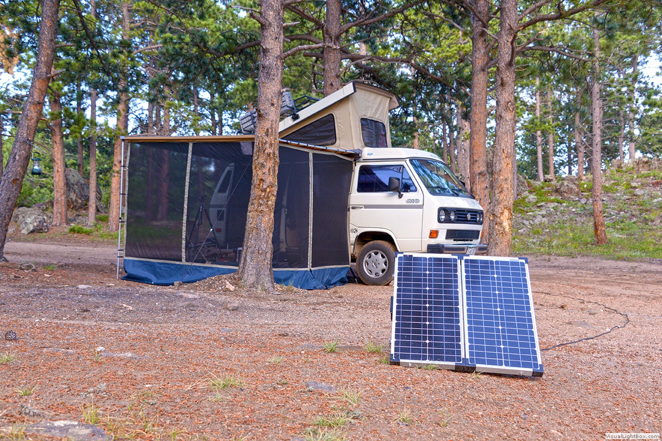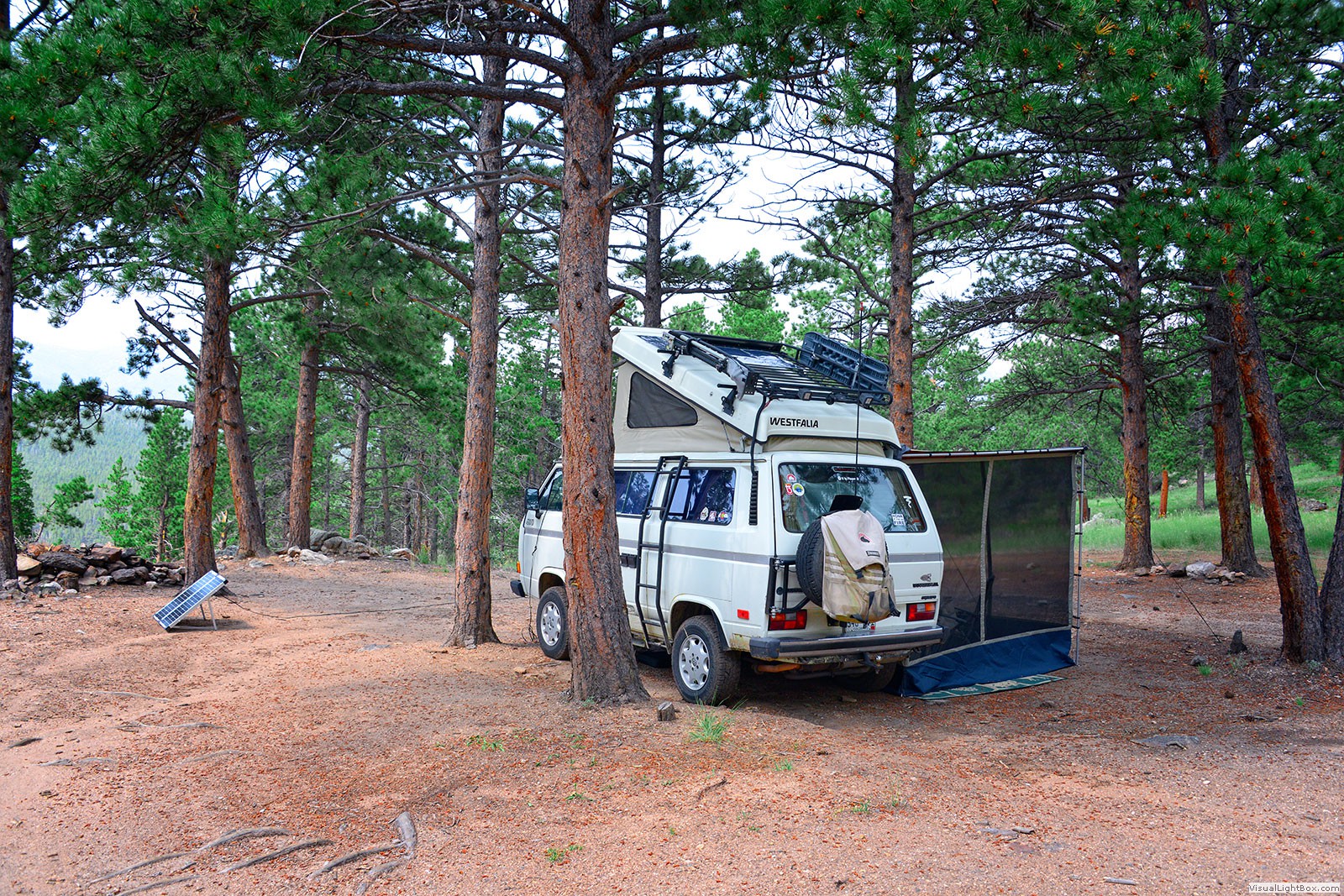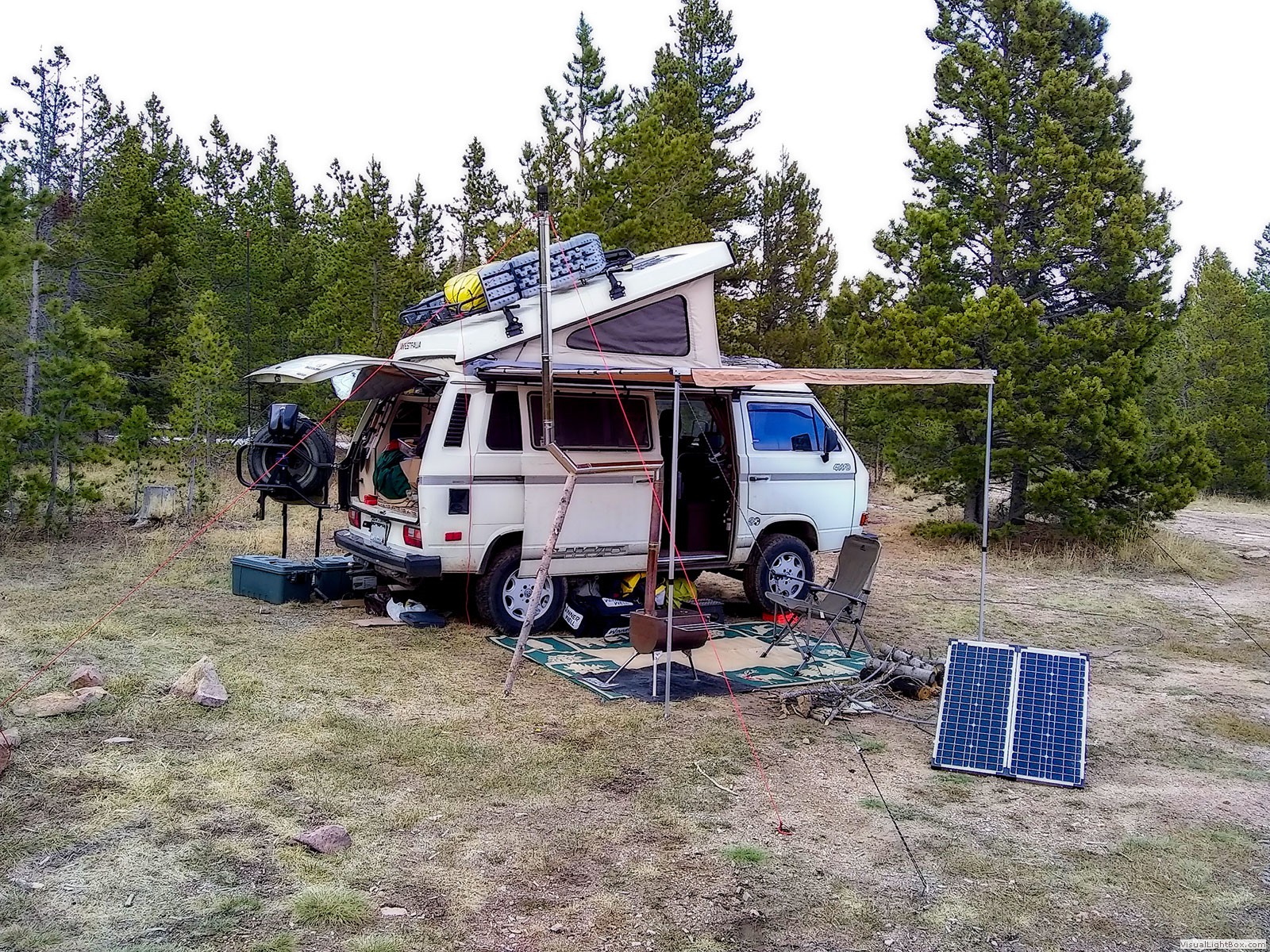 THe ARB Awning is a great addition to my Syncro and provides shade and cover from the rain and snow. The awning is attached to the rain gutter using a ARB/SUNSEEKER MOUNTING KIT FOR VANAGON from Rocky Mountain Westy/Van Cafe and has been rock solid. The awning is even further enhanced with optional accessories, such as the 3-Wall Tent and Screen Room. My awning is the 2500x2500 size, which is about 8', 2" x 8' x 2". The tent and screen room size must correspond to the size awning you have. The 3-wall tent does not have a floor, which is preferrable by me since I use my Winnerwell wood stove in there and really don't want to burn any holes in the floor. I'm not even sure ARB still makes the 3-wall tent and screen room anymore and may have replaced both with their newer ARB 813108A Awning Room (Deluxe w/Floor 2500mm x 2500mm The main issue with the awning, especially with the tent or screen room attached is wind. Extreme care must be taken when staking down the awning and accessories to keep it safe during mild winds. With heavy winds, it is advisable to remove any accessories and roll the awning back up into the storage bag. I learned this the hard way during a winter storm camped at around 9,000 feet. I woke up to a horrible flapping noise and found the tent had come loose and was acting like a sail. I managed to bend all four poles on the awning, as well as ripping off one of the stake down areas on the tent. I was just glad I didn't have a fire going in the wood stove, which would have added another horrific layer of calamity to the situation. Fortunately the replacement poles are relatively inexpensive and I was able to repair the damage for less than I thought it would cost. Now I try to pick a campsite with some protection from the prevailing winds, like a good bank of trees, and I also spend a good amount of time making sure I have staked the entire system down as securely as possible. To further secure my awning to the ground, I invested in the ARB Guy Rope Set, which inorporates a spring to help absorb the energy produced by the wind and helps prevent damage to the awning. I also found some similar springs on Amazon (see left) which I'll use to augment the ARB versions and these are much less expensive. The ARB versions come in a two pack and are around $22. The springs I found on Amazon are five for under $15. Even these probably won't help much if I find myself in another storm with 70 mph wind gusts, like I experienced during my unfortunate incident describe above, but I think it's good insurance for more moderate and typical winds. I also puchased a bunch of good stakes to replace the cheaper stakes that come with the awning and accessories. The 3-wall tent is in three individual sections (see images below), which zipper together to fully enclose the van. But they can also be used individually if you only want to put up one or two sides, preserving an epic view or for some privacy from nearby campers. By the way, the fourth wall is the van in case you were wondering. To further enhance the usability of the tent, I got a portable wood burning stove. It's stainless steel so it won't rust or ever need painting and it all fits into a nice storage bag which I keep on the roof rack while traveling. I had to cut a hole in the tent for the stove pipe, which was a bit intimidating, but I too my time and did several mock setups to make sure I had all my measurements correct before committing to cutting a hole in my beautiful tent. I'll create another page dedicated to using this stove in the near future, so stay tuned. The screen room is a four wall mesh room with a zippered entrance on the front side. It also has a zippered entrance to the vehicle. There is no floor, but the way it stakes down, there is very little chance of bugs gaining entrance via the wall. Using it with my Vanagon, a little extra care is needed to seal it against the body of the van. I use neodymium magnets to seal up any gaps, as seen in the video below. Since I don't have a removable screen for the sliding door, this more than makes up for it, while adding a great deal of bug proof living space. I have really enjoyed hanging out in the screen room on one of my comfy folding chairs, free from pesky insects. |