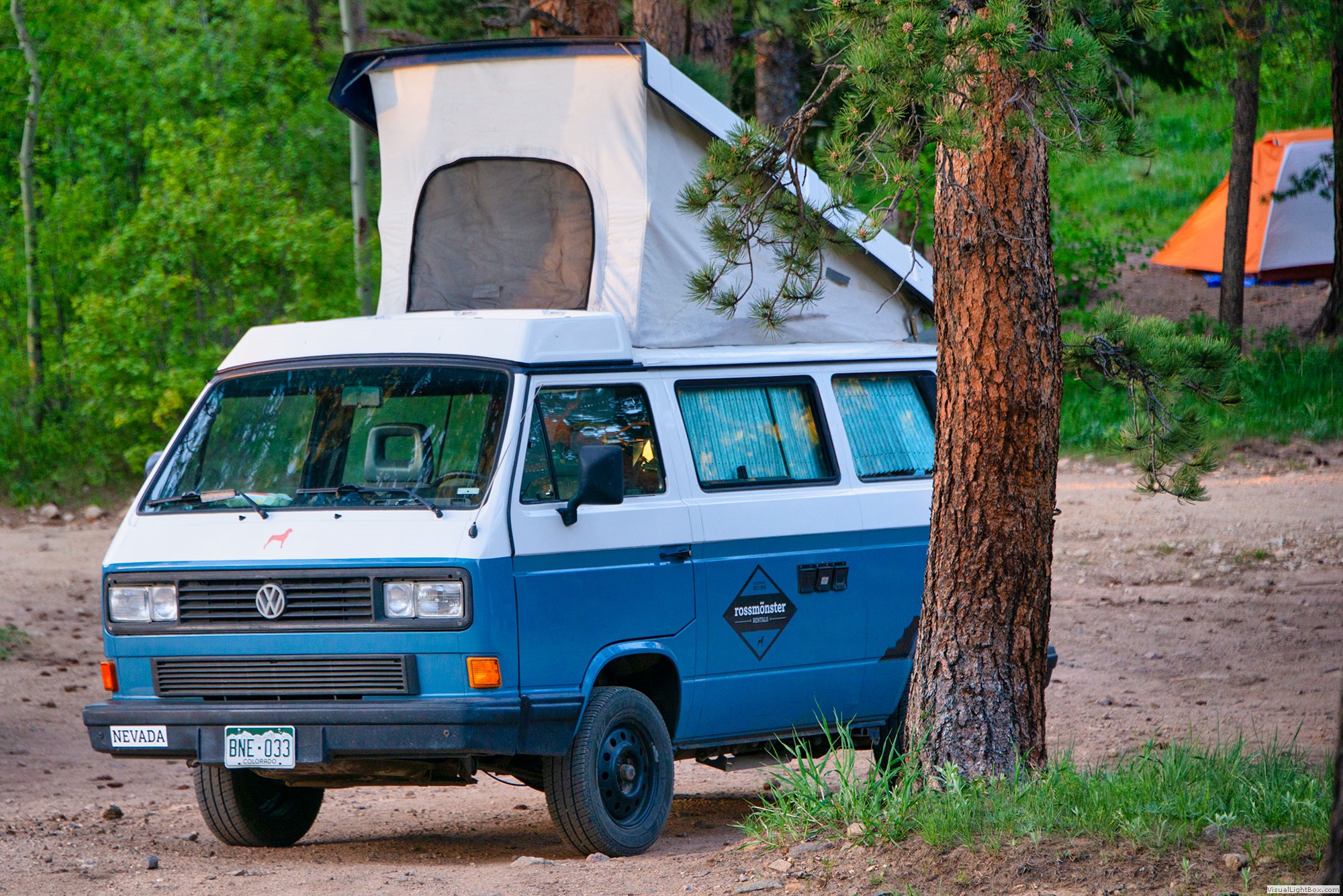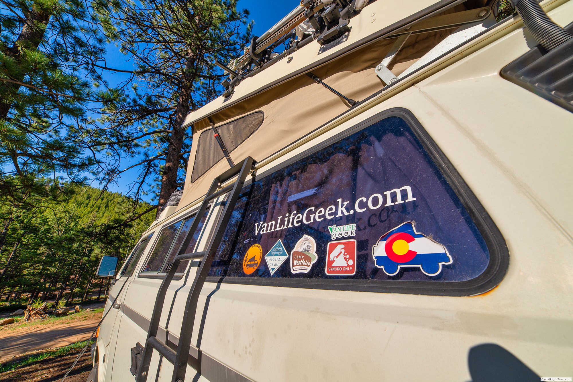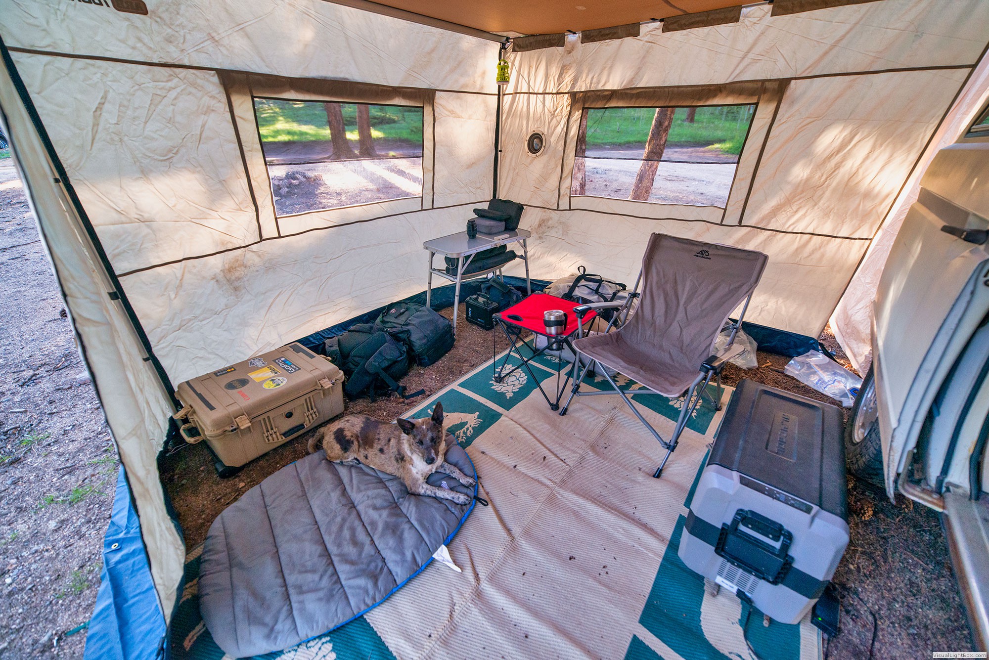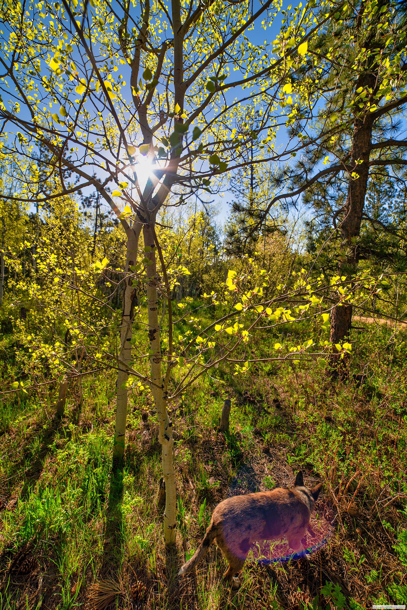 Since the dispersed camping areas where I'd planned to camp are closed due to our recent fires, I decided to visit one of my old haunts outside Rocky Mountain National Park in Roosevelt National Forest. Most of the good dispersed camping area was still closed for the season when I arrived on the 2nd of June. I had called the Forest Service before I went and they informed me that the gate to the Johnny Park area, where all the really good dispersed camping is, was not going to be open until June 15th. Of course, two days after I setup camp, they opened the gate early. I decided not to tear down camp and move. I'm way too lazy for that and figured I'd come right back after a short trip to the valley to take care of some business. This particular site is at the base of Parachute Hill Road, which has a great site just up the hill, but the road was extremely muddy and the condition was horrible, so I just settled for the big site at the base of the road. I've actually camped at this same spot many times over the years. Since there is a working ranch at the end of the road, they have to keep this road open year 'round, so it's pretty much always available. I camped here once in the dead of winter and experienced a major storm that bent all four of my awning poles, with wind gusts hitting 90 mph. During this trip, I also had one evening and night of high winds, but my new method of staking out the awning and tent worked like a champ and I had no issues with the wind. The problem with this particular area, which is before you get to the closed gate and is easily accessible, is that it can become very crowded. Over the weekends, I'll bet there were at least a dozen campsites scattered around a relatively small area. One afternoon, I discovered a group setting up their tents right behind my van. They were nice enough folks and had a bunch of dogs that Willow enjoyed playing with, but they were a little close for my taste. Over the last 25 years that I've been camping here, I've never encountered crowds like this. Everybody wants to go camping, I guess. There were many white self-customized Ram Promaster vans that came by for just a day or two, or just overnight on their way to some unknown destination. There was also a large overland vehicle that stayed a few days that was fun to see. Despite all the people, I still had a great two weeks in the forest and met quite a few really nice people. One super nice couple had a dog that was the same breed as Willow and the two dogs became fast friends and played for hours. Willow enjoyed visiting the various campsites and meeting all the people. Turns out she's a bit of a thief though, as she stole a spoon from one campsite and a lime from another. She played with that lime for a week, carrying it around like some kind of trophy. I'm not sure Willow could have enjoyed herself more, with all the people to meet and dogs to play with. Not to mention just exploring the forest and finding marshy areas to cool off in. She barked at a wild turkey that wondered into camp, sending it running off into the woods. I also had the chance to play with some new camera gear, such as my Rokinon 14mm lens, a 1.4X teleconverter for my Sigma 150-600 lens (makes the lens 840mm at full zoom!), and a Moza Slypod (a newish type of compact slider). I setup my trail-cam hoping to find some cool wildlife visiting my site at night, but only got myself going out to pee. One of these days, I'll catch something cool on that trail cam. If nothing else, I can see if any humans are checking me out at night with nefarious intentions. I flew the drone several times, gaining some much needed experience.