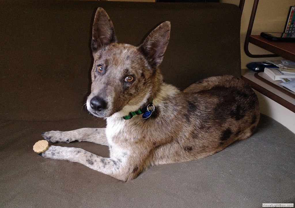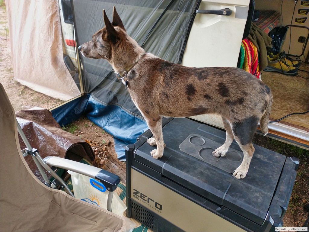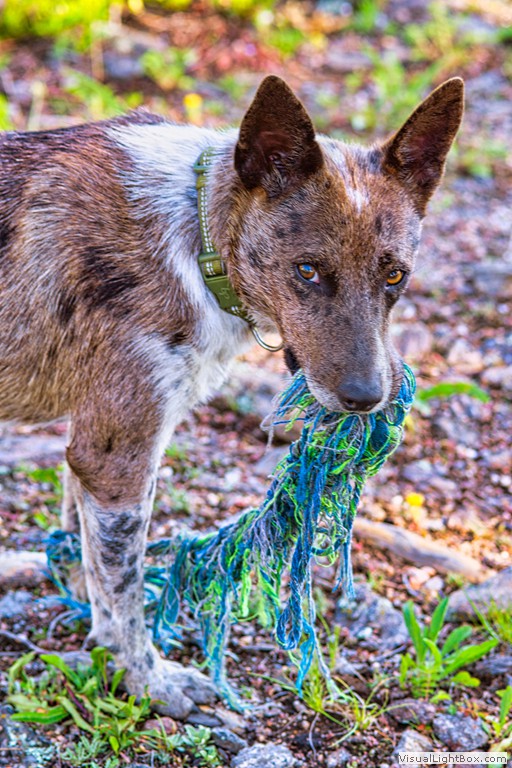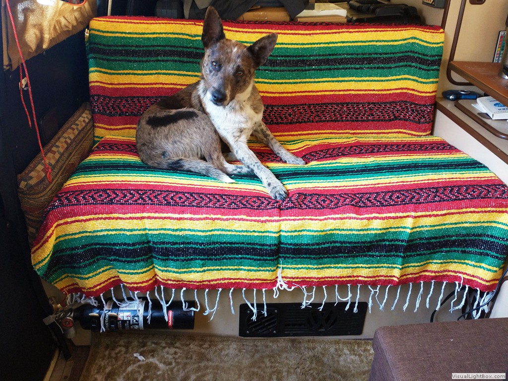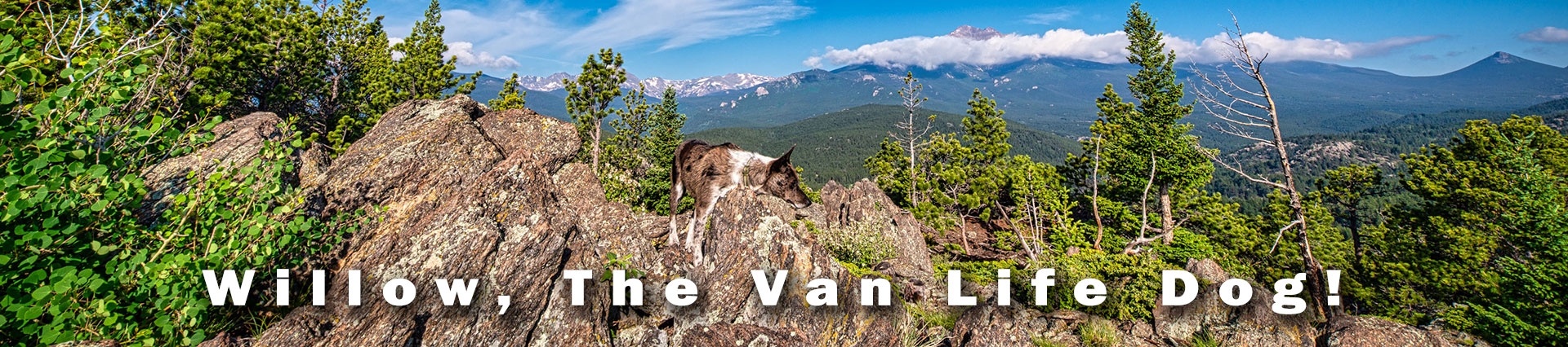I got Willow through the Humane Society and am so happy I did! When I first met her, she was super shy and was afraid of anyone or anything. She just sat in the corner of the room trying to stay away from me. I decided to take a chance on her and hoped she would come out of her shell once she was out of the shelter and traveling around with me in the van. It only took a few days for her to warm up to me and is now a very outgoing, confident and loving dog. She loves to camp (good thing, since that's what I do full-time) and explore the forest with me. She enjoys meeting the new people we meet along the way and loves playing with the other dogs in neighboring campsites. She can be a bit of a thief, though. She stole a spoon from a neighboring camper while he was making breakfast. She has also come back to camp with a lime, an avocado, several avocado pits and a t-shirt to name a few. She has also found dear feet/hooves at two camps, which is incredibly gross, but she enjoyed them. Her name when I adopted her was "Bunny", but I didn't think she felt like a Bunny and she did not know her name was Bunny anyway. I was on the phone with my sister telling her about my new dog and that I wanted a different name for her. She did a Google search on the most popular girl's names in Australia and Willow was in the top 10. We both thought Willow was a great name and after just a few weeks, she knows that she is Willow. She is also very smart and is enthusiastic during our training sessions. She keeps a good eye on camp and alerts me to any intruders. I woke up in the middle of the night one night to her barking, looked out the window and there was a moose walking through camp. She doesn't miss much! Australian Cattle Dogs have an abundance of energy and we satisfy that need to expend energy by playing catch with her ball. I use a ChuckIt! thrower and can really get some distance on my throws. It takes quite a bit to wear her out. As of this writing, I've only had her for a few months, but I can already tell she is going to be one of the best dogs I've ever had. |