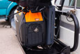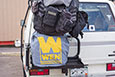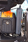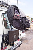 I purchased all the parts and had the reconfiguration complete in no time and was hoping all my measurements were accurate so all the items I wanted to put on the shelf would actually fit. It worked out perfectly and there is exactly room for my Wen 2000 watt generator with my main took kit right behind it, as well as two RotopaX FX-3.5 FuelpaX 3-1/2 Gallon Gas Cans. I purchased the protective cover for the generator, which is bigger than it needs to be, so I am able to cover both the generator and the tool kit to keep them out of the elements. I got a cable lock which goes through the shelf Westy cutout graphic and then through both the handles of the generator and tool kit/box. This way, the cover fits over them while they are locked down and has the added benefit of keeping the locking mechanism safe from the elements. Another cable goes through the gas can handles and around the frame of the swing-away and is secured with a "weather proof" padlock.